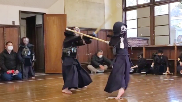 打ち合いの後、鉄平が見事な飛び込みコテを決めて勝利しました。