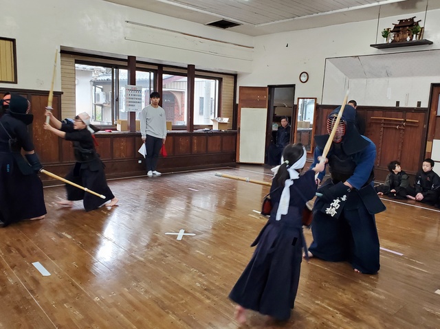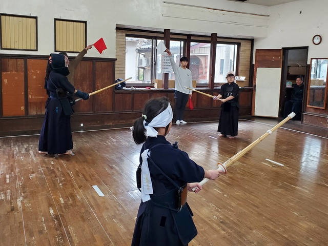 基本組の試合では、正しい所作や声の大きさ、足さばき、竹刀の振り、打突の正しさや強さ、踏み込みの力などを総合的に見て、審判が判断します。