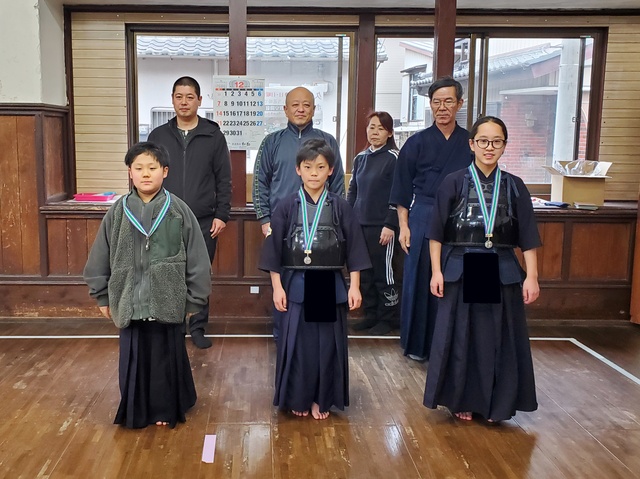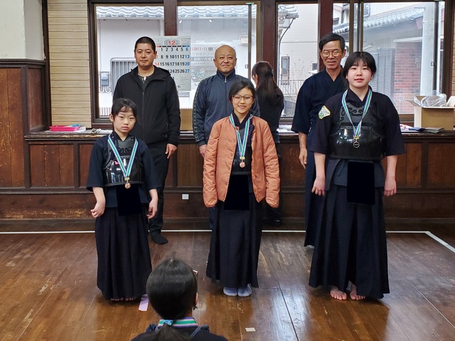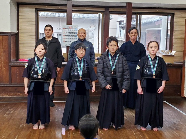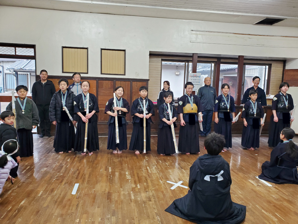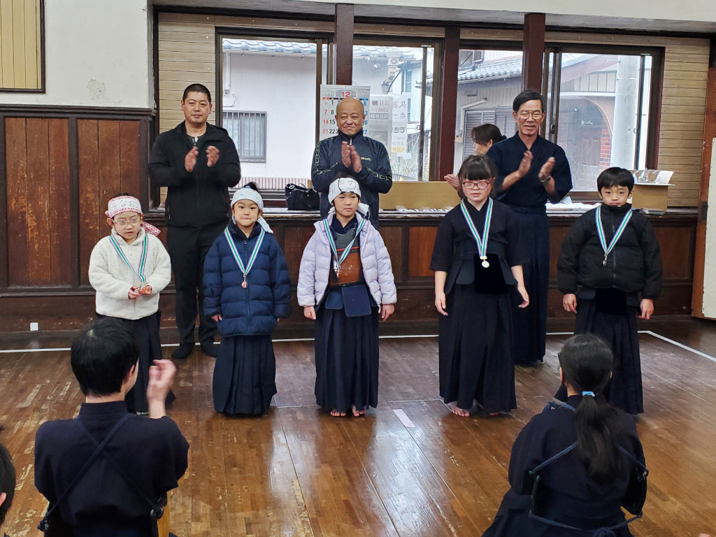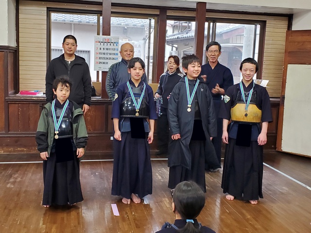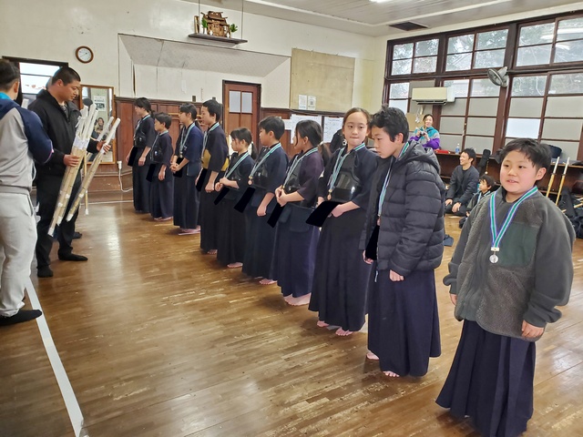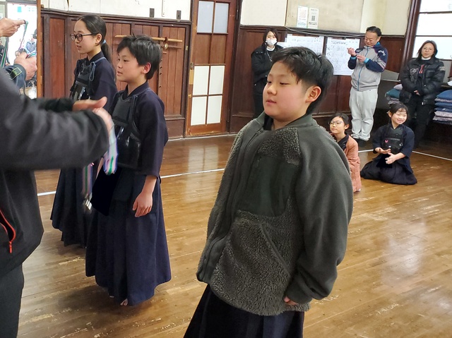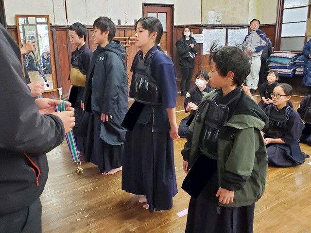1年間、稽古の出席日数が多かった子に、努力賞として竹刀が贈呈されました。