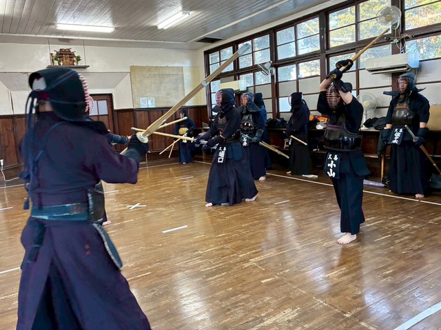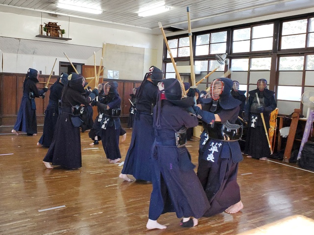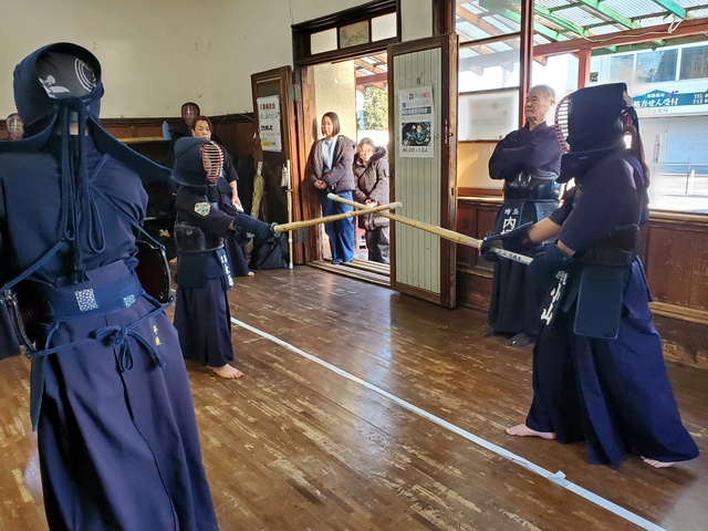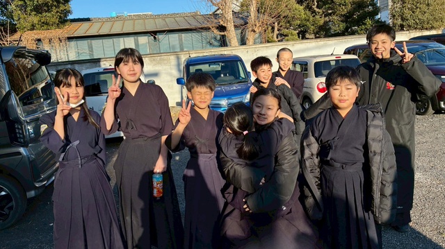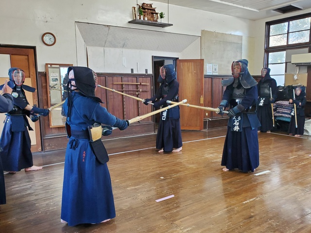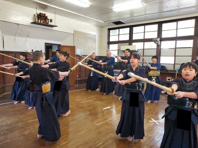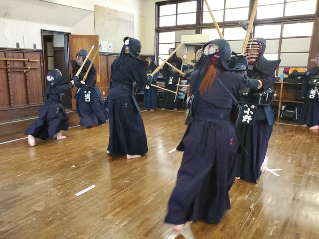 今年の元旦稽古には、小学生7名、中学生2名が参加し、大人の先生方と一緒に汗を流しました。