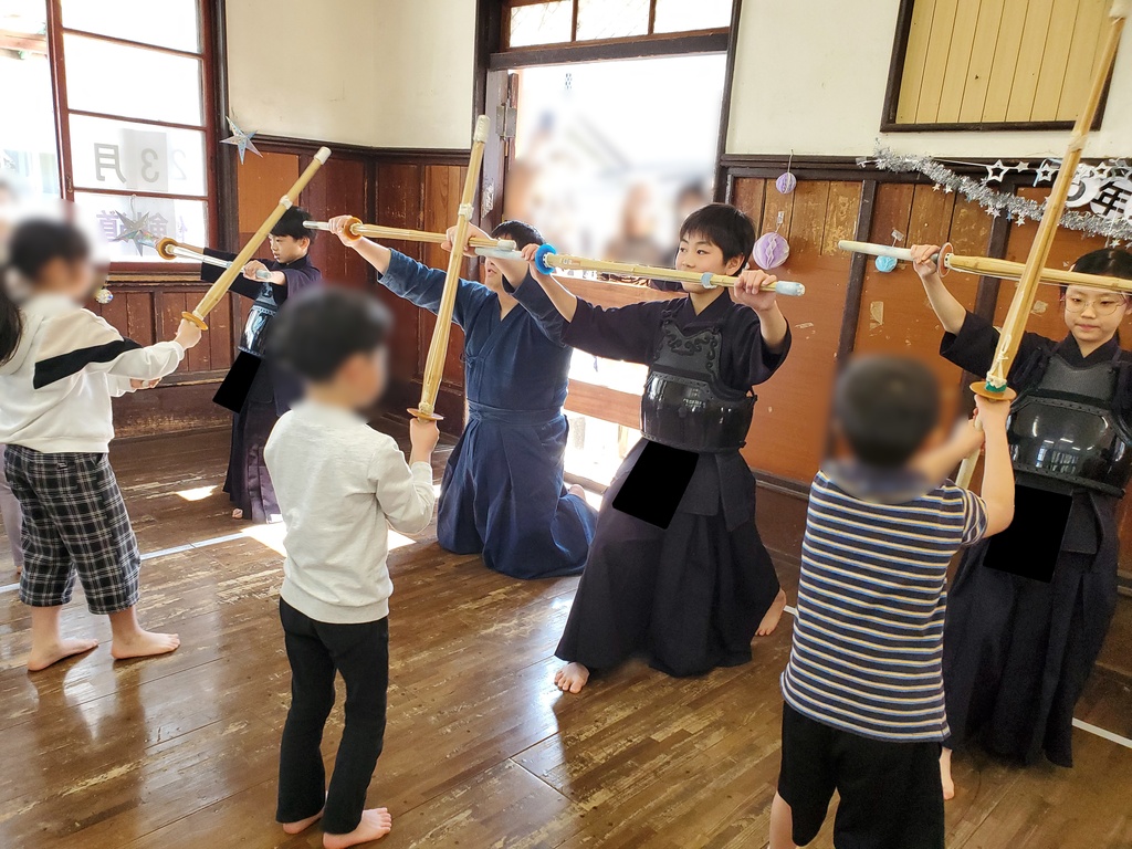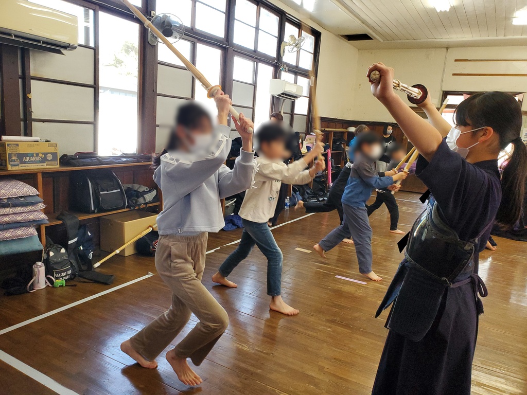 難しい動きですが、とても楽しそうに笑顔で竹刀を振ってる子もいて嬉しくなりました。